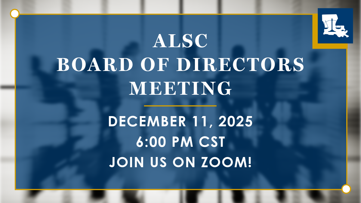 ALSC Board of Directors will meet on Thursday, December 11, 2025, at 6 p.m. to discuss routine business matters. The meeting will be held via Zoom or telephone.