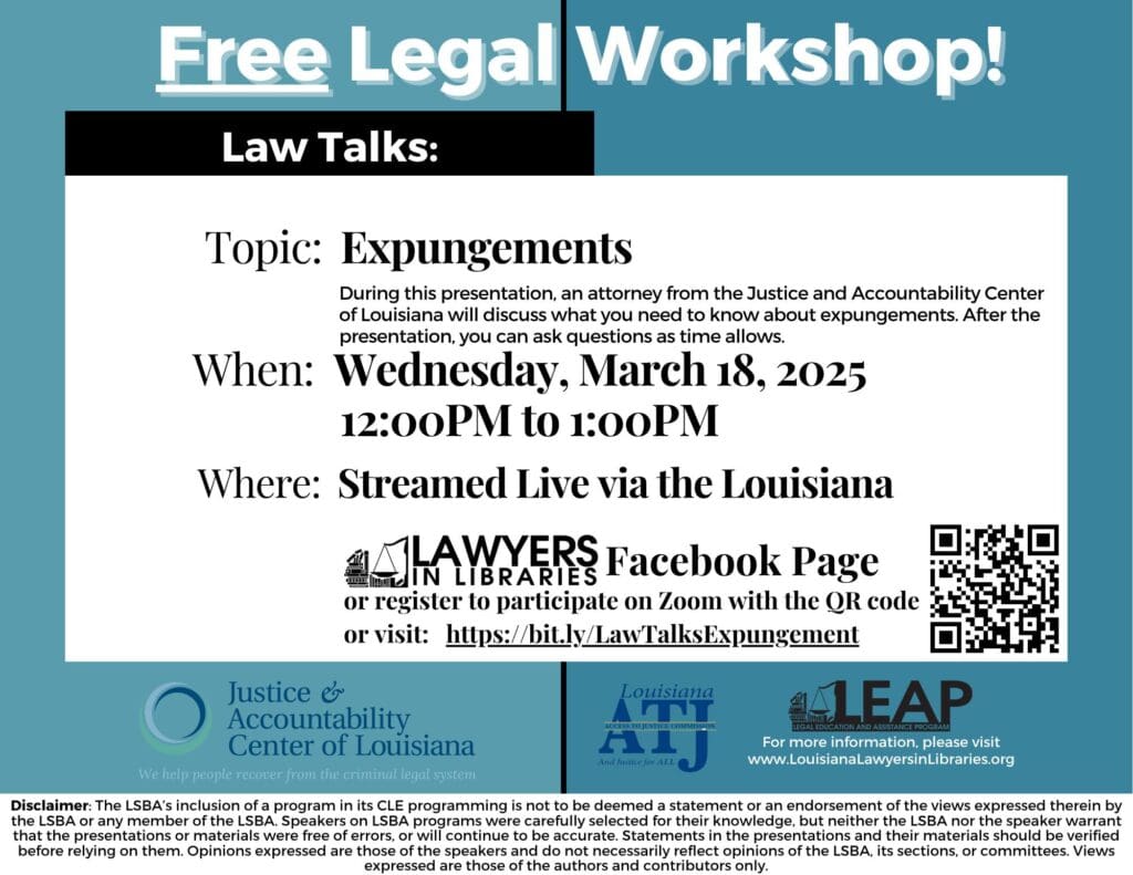 « All Events This event has passed. Ask-a-Lawyer October 24, 2019 @ 12:00 pm - 2:00 pm « Presentation – Wills, Power of Attorney and Living Wills Ask-a-Lawyer » Featuring Attorney Debbie Smith, Central LA Pro Bono Project Add to calendar Google Calendar iCalendar Outlook 365 Outlook Live Details Date: October 24, 2019 Time: 12:00 pm - 2:00 pm Event Category: Community Legal Education Presentations Venue Alexandria Branch Library 411 Washington Street Alexandria, LA United States + Google Map