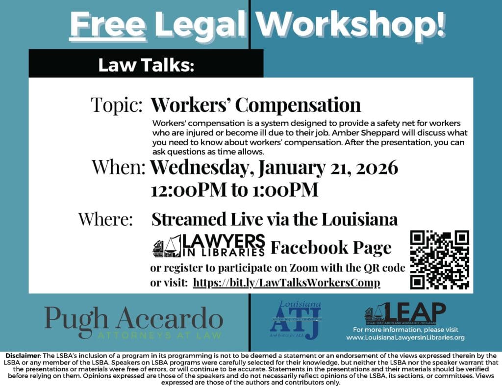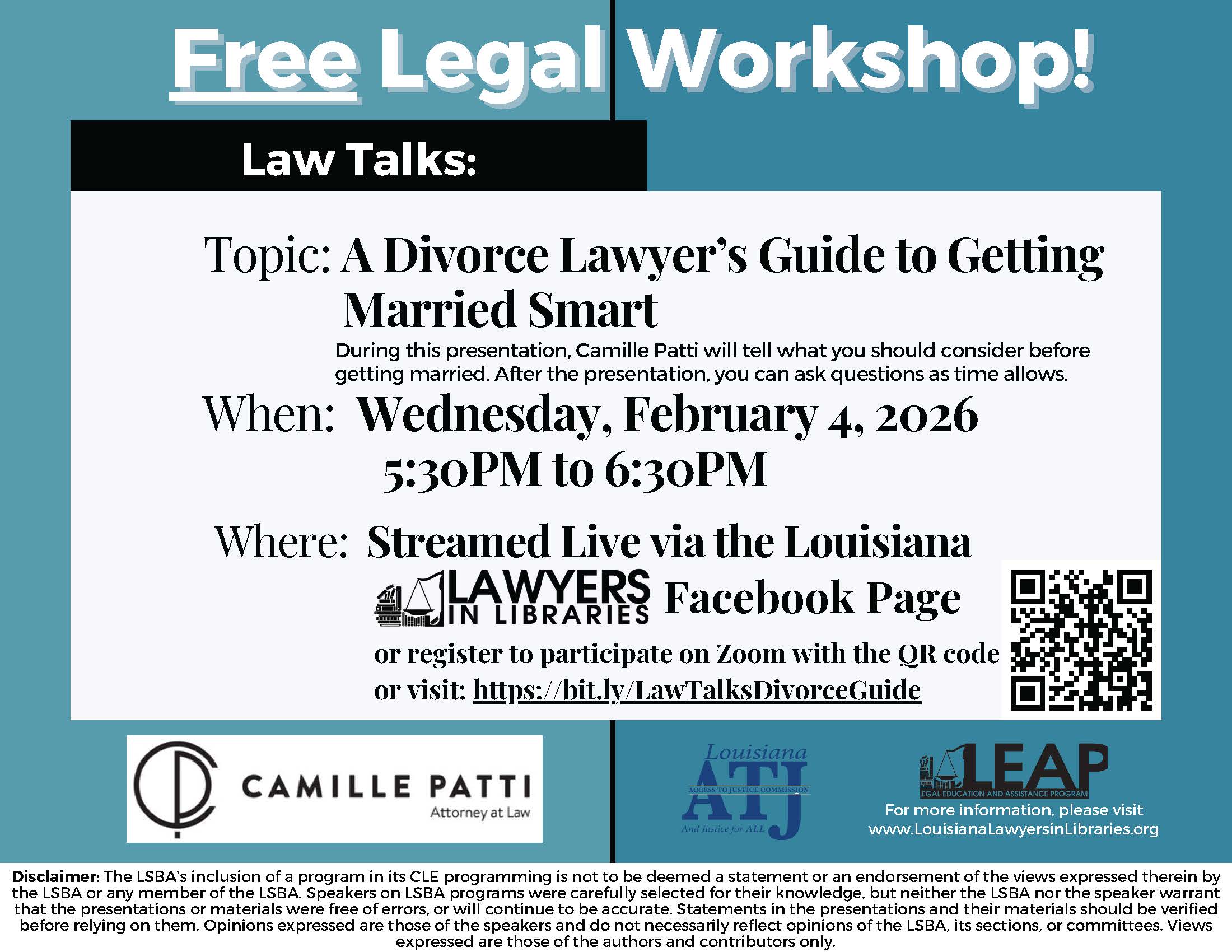 For more information, please visit www.louisianalawyersinlibraries.org.